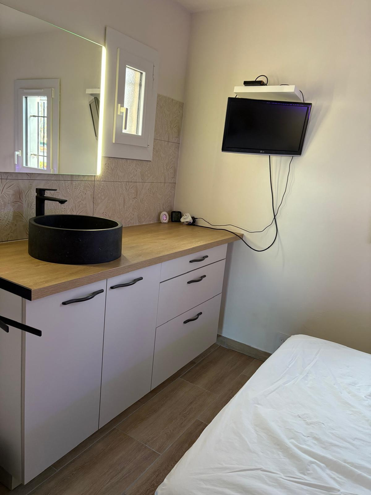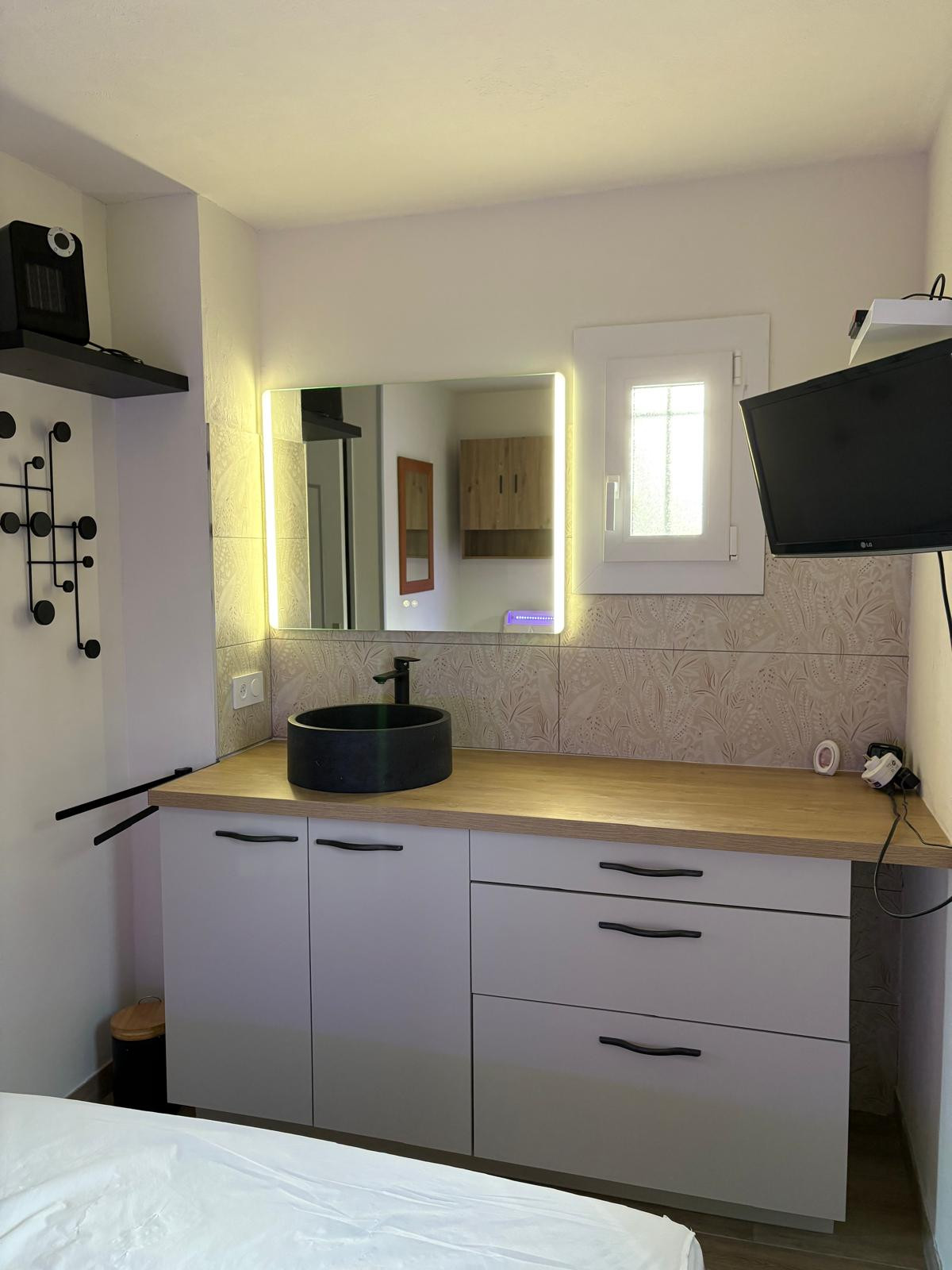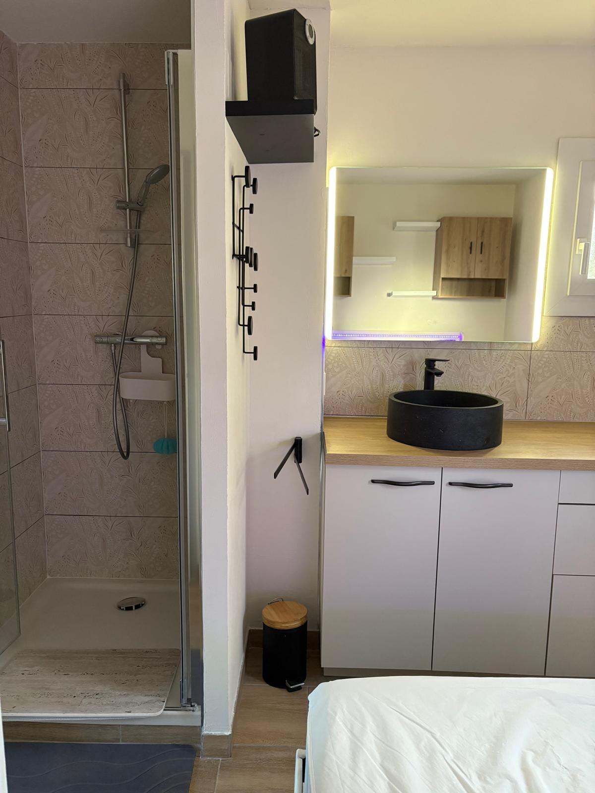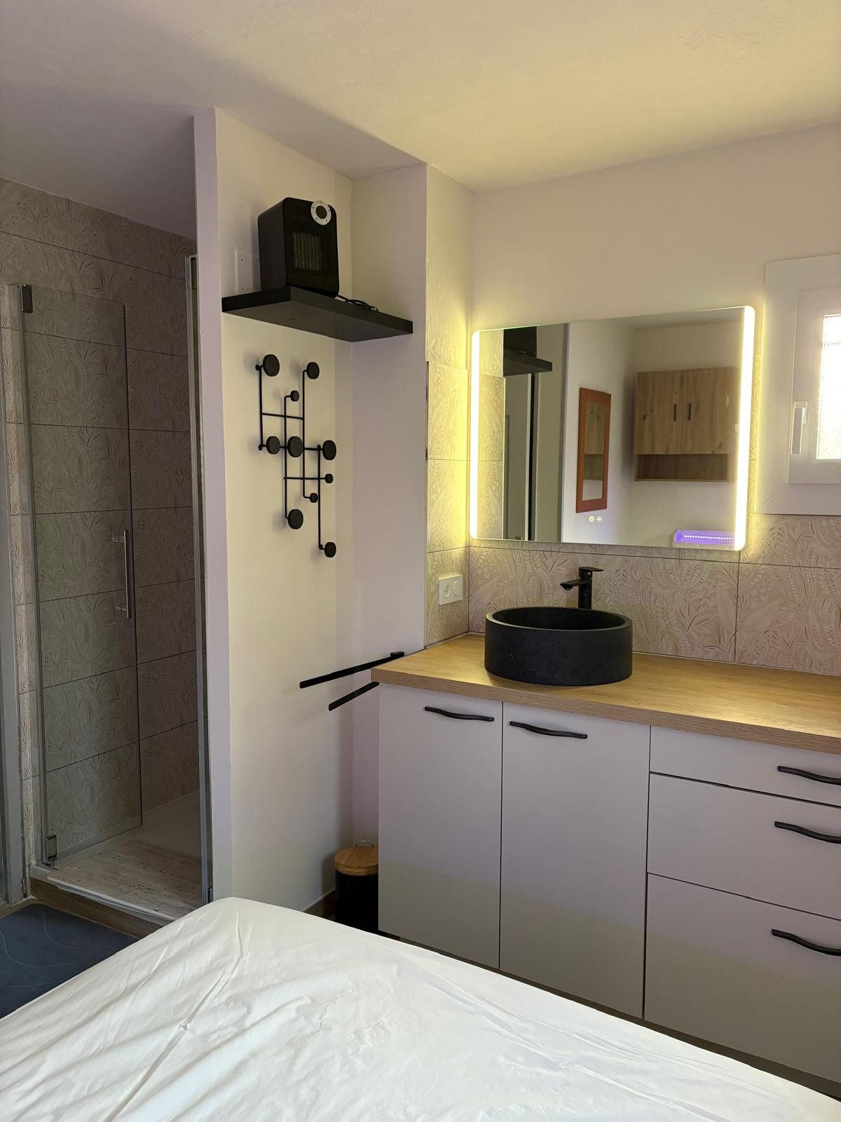 Il dispose d'une chambre avec deux couchages : un lit double principal et un canapé-lit, permettant d'accueillir confortablement jusqu'à 4 personnes. La salle de bain avec douche répond aux besoins de tous les voyageurs. Une cuisine américaine entièrement équipée vous permettra de préparer de bons petits plats !.