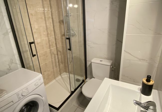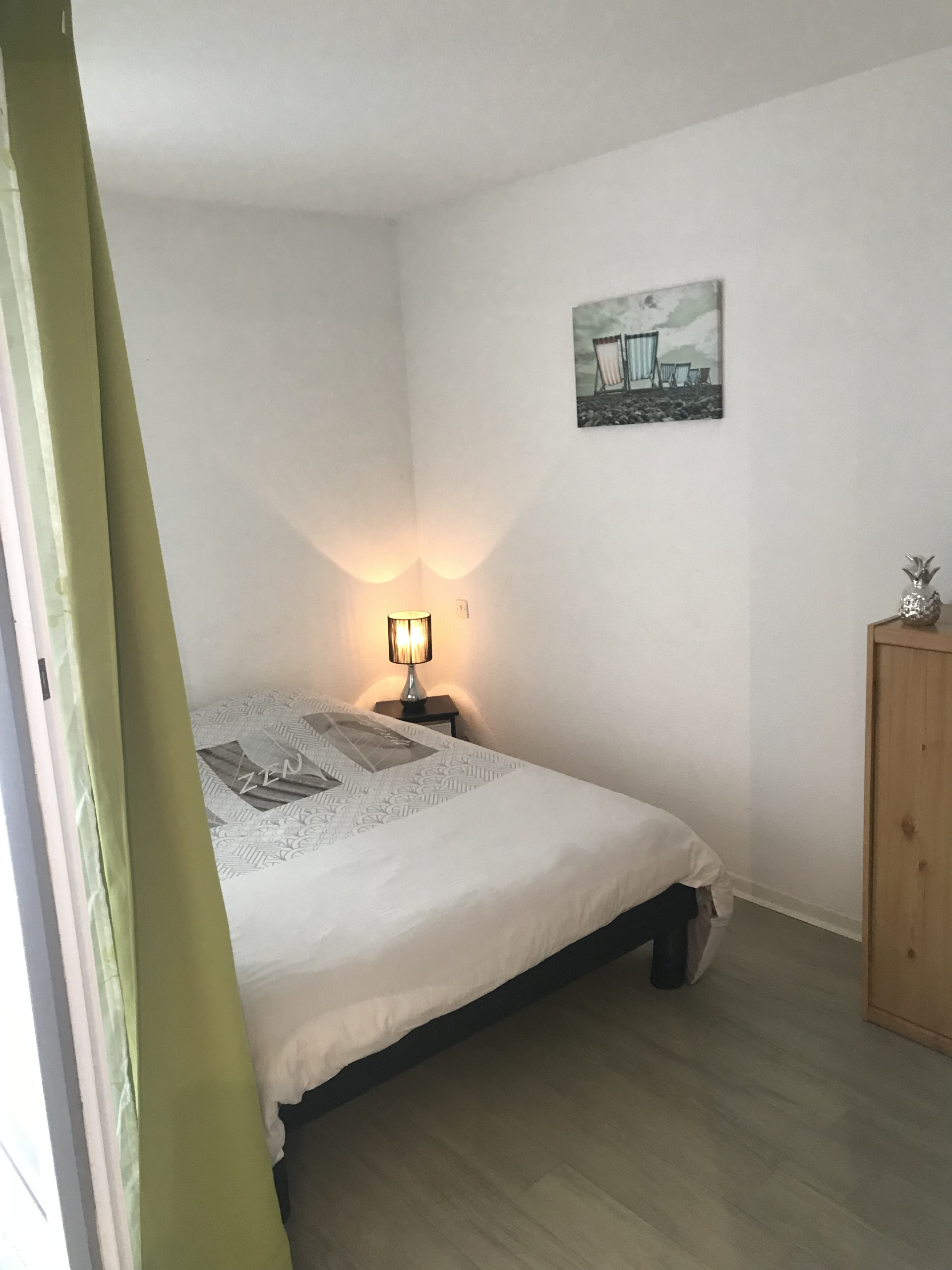 Cet appart dispose d'une chambre avec lit-double, et de deux lits superposés à l'entrée du séjour, pour une capacité de 4 personnes (max 2 adultes), idéal pour une famille avec 2 enfants !