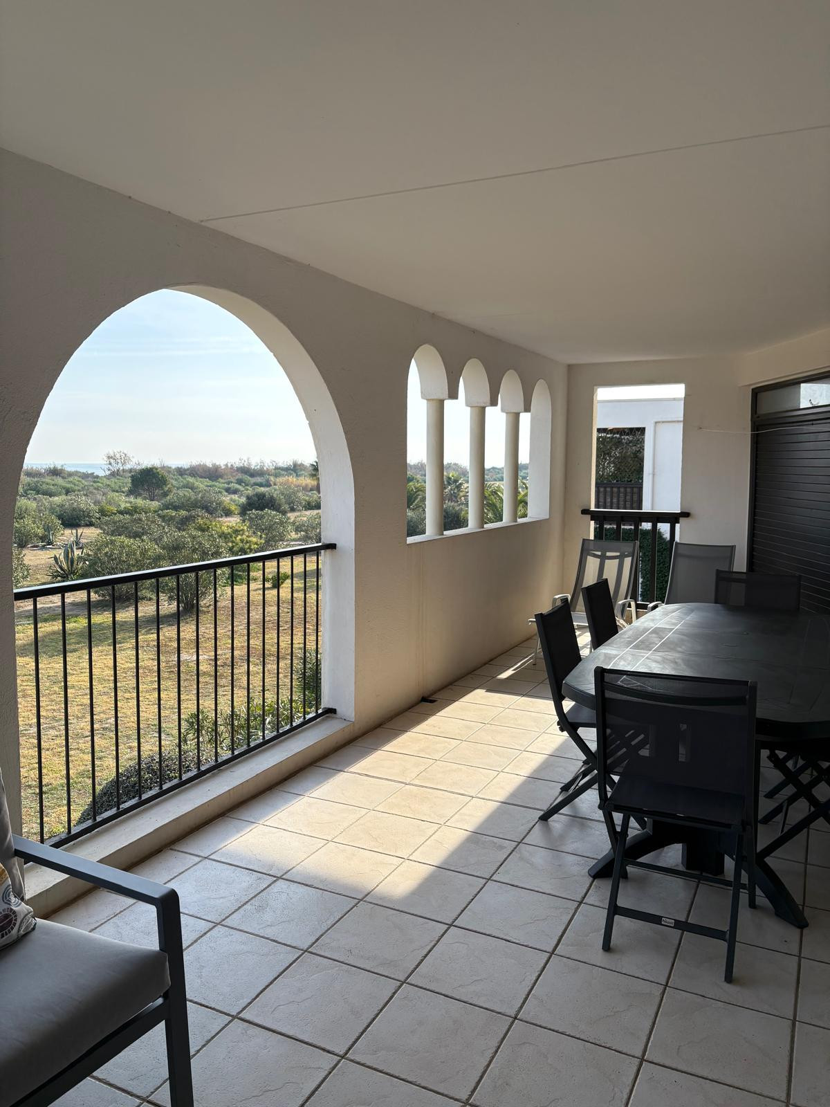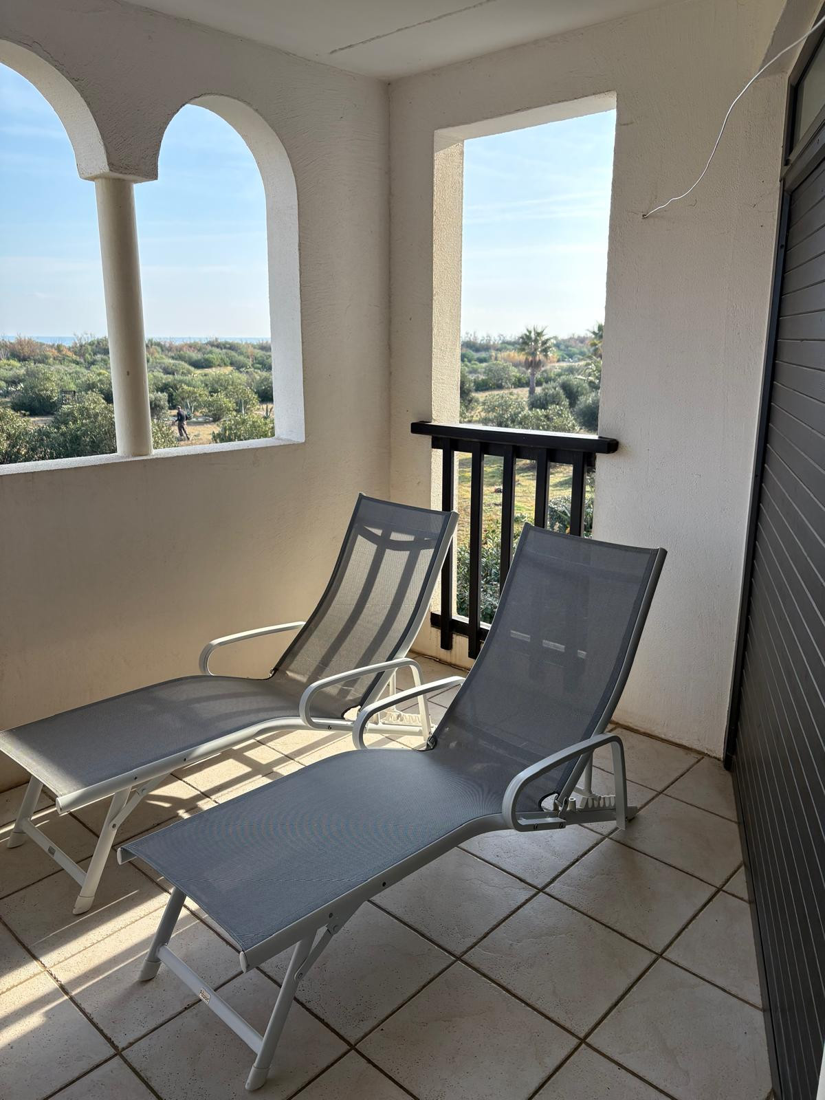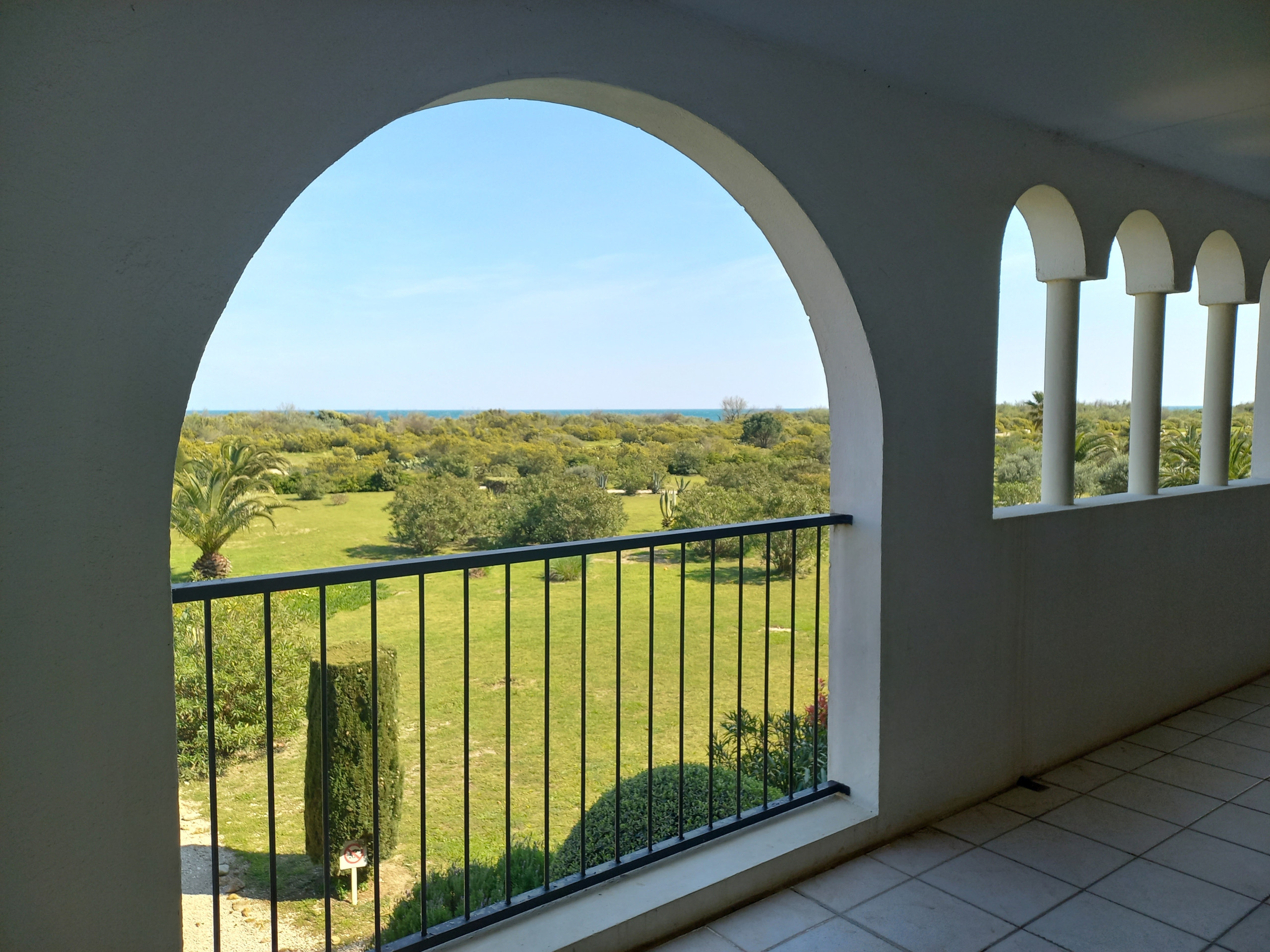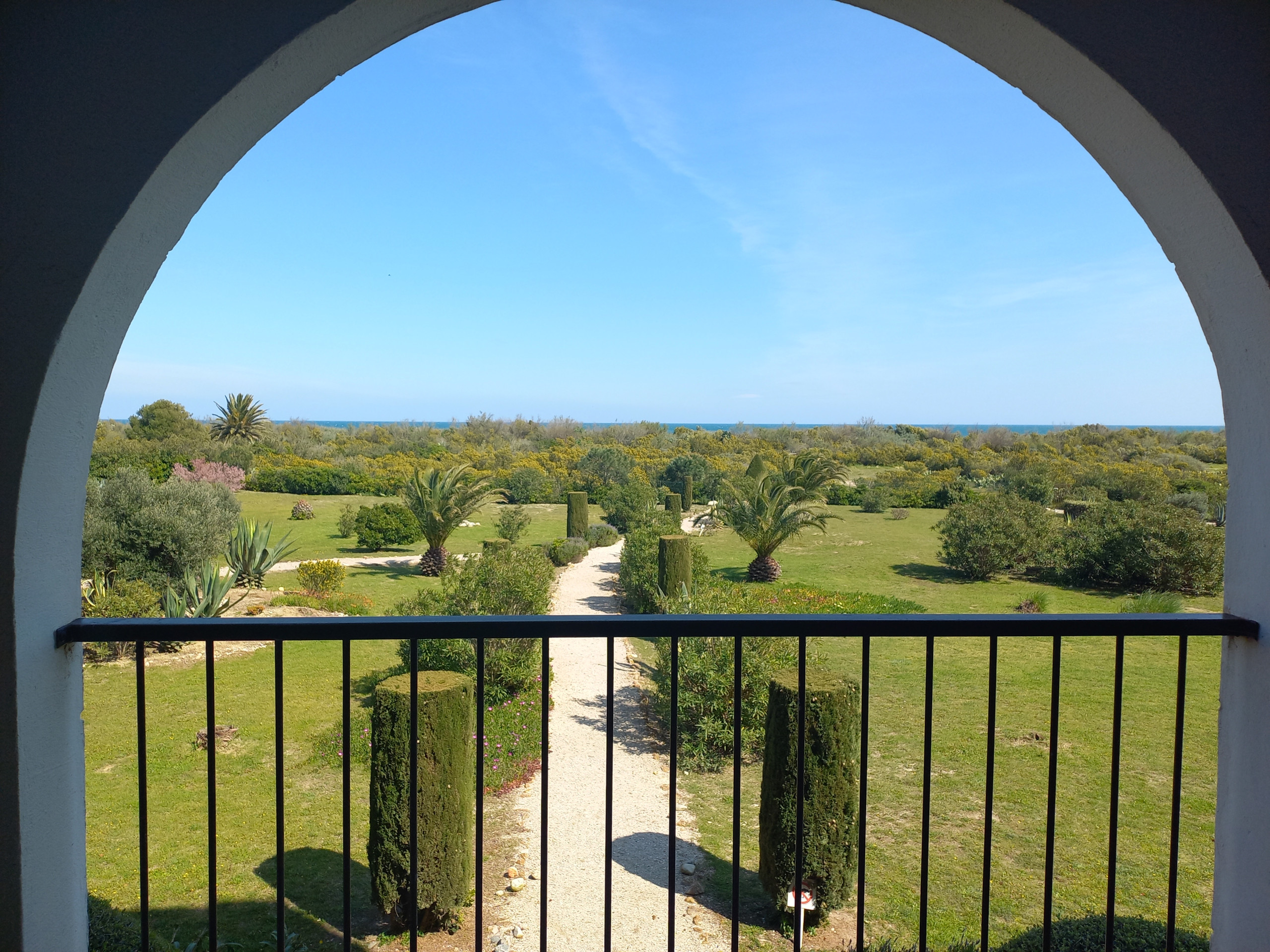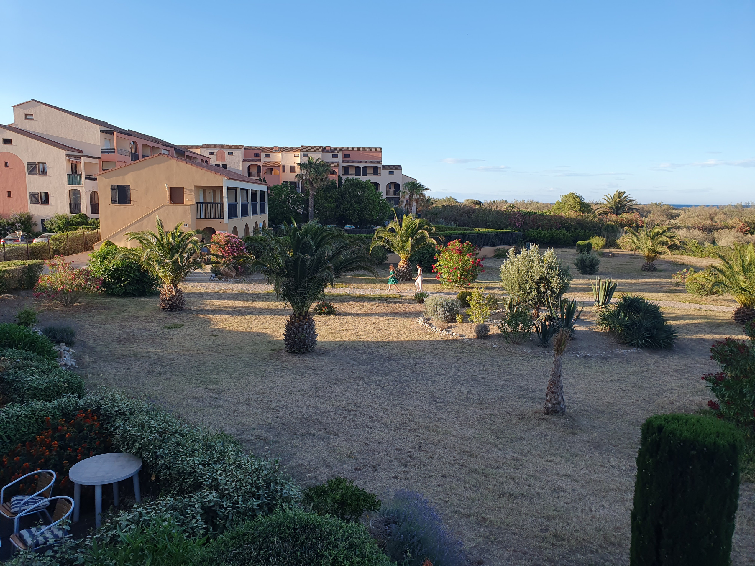 Une terrasse spacieuse et ensoleillée avec vue mer et vue sur le jardin de la résidence … de quoi commencer chaque journée avec un sourire !