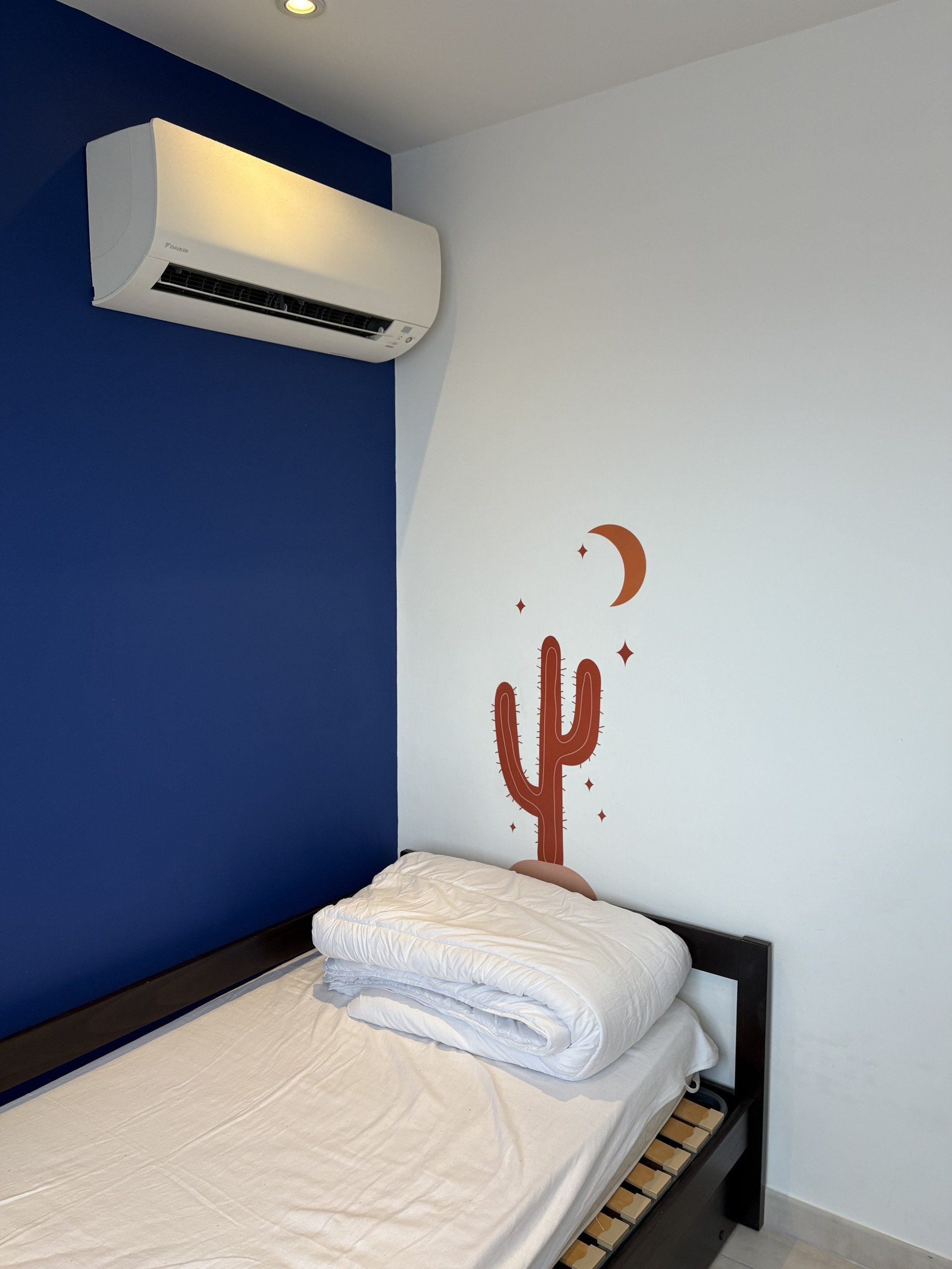 - d'une chambre avec 1 lit 140 et 2 lits en 90
