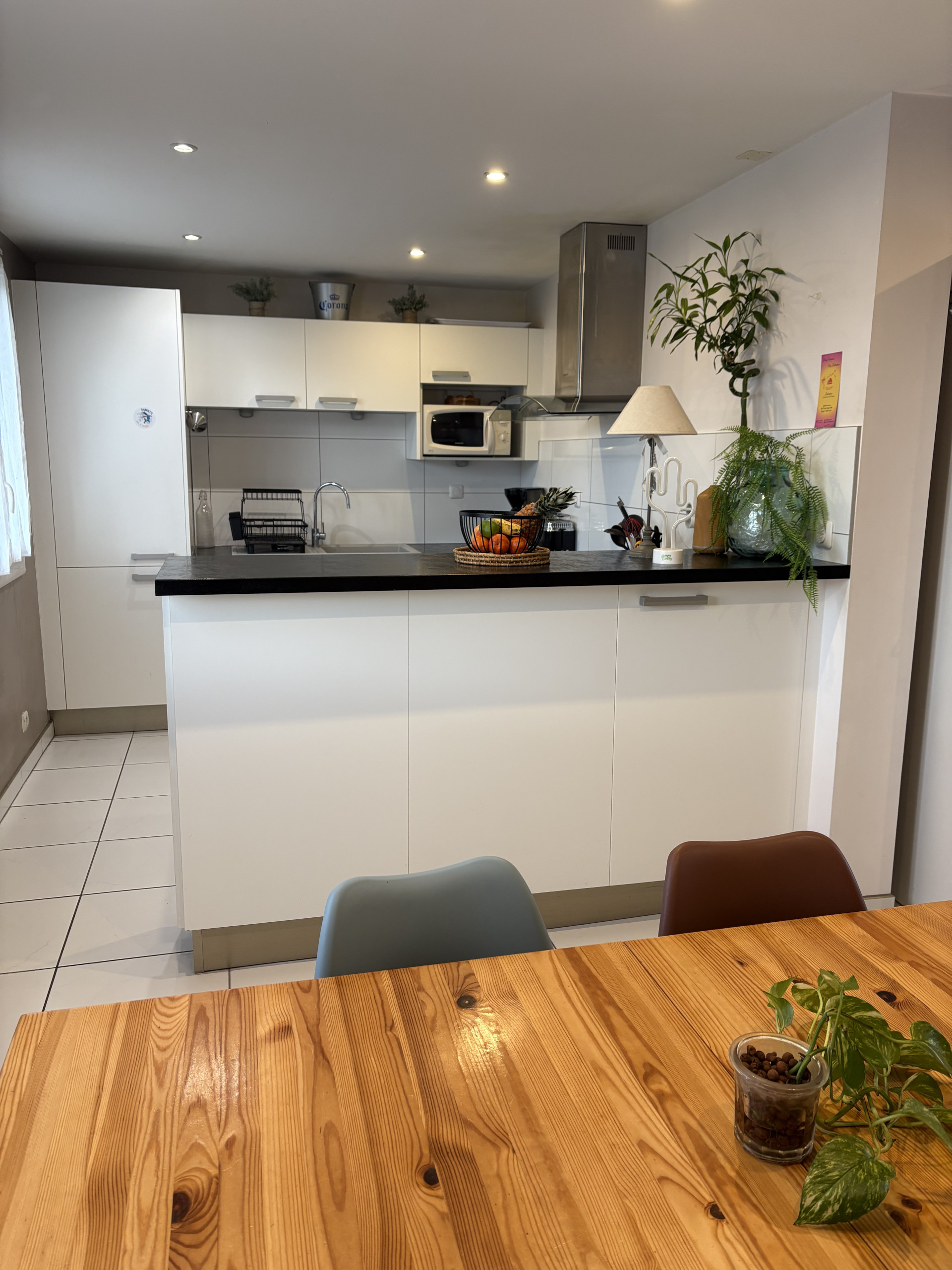 - d'une cuisine équipée avec notamment réfrigérateur, congélateur, lave-vaisselle, cafetière Bosch Tassimo