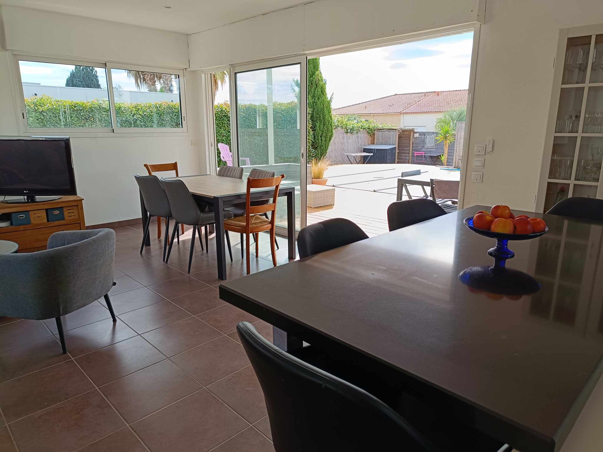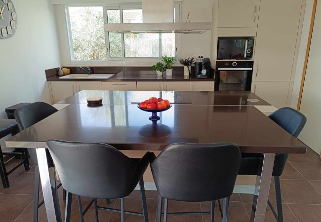 Très vaste et parfaitement équipée, la villa est idéale pour 8personnes avec ses 4chambres,son très spacieux salon ,sa salle à manger et cuisine ouverte sur la terrasse et la piscine!